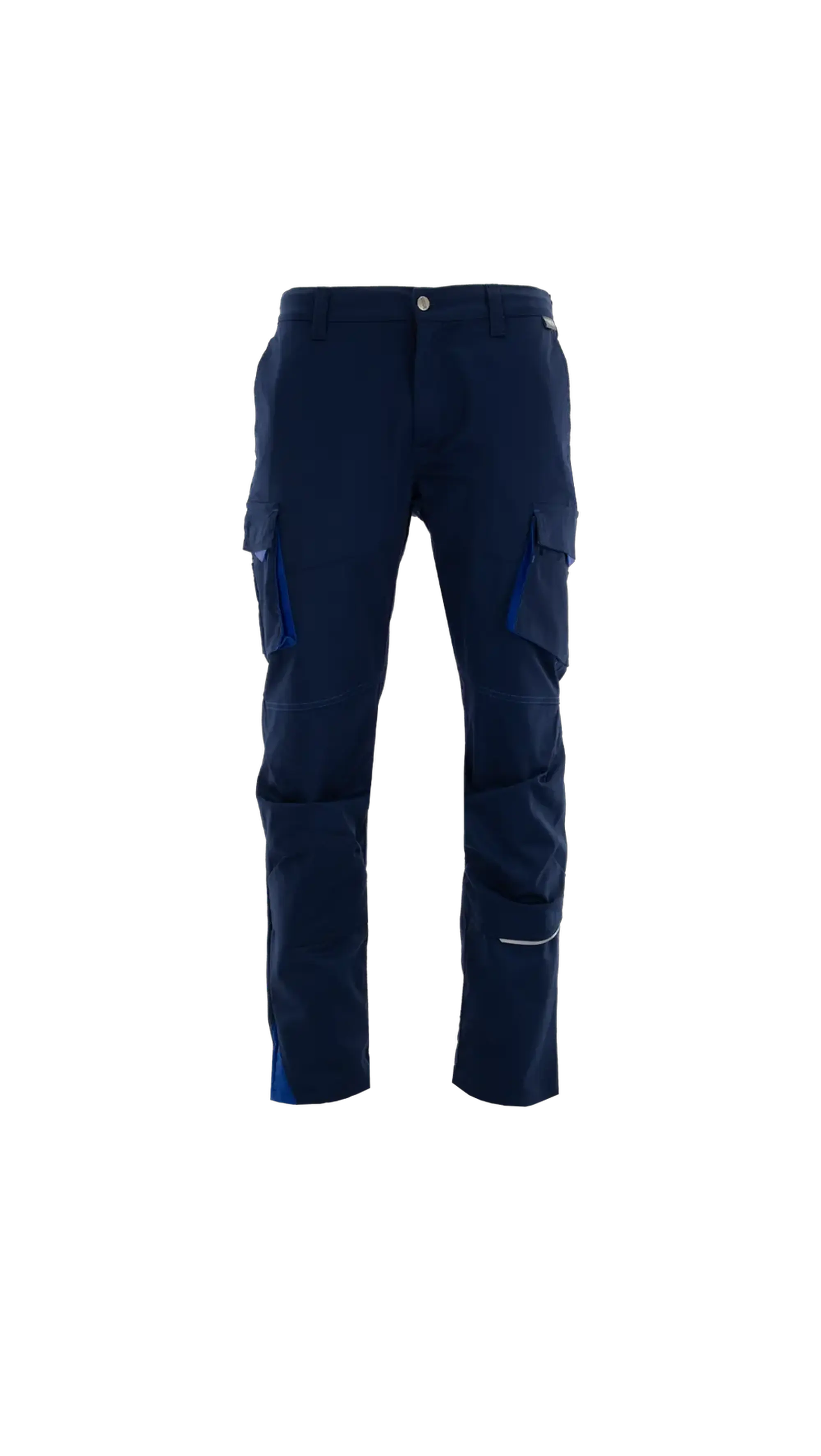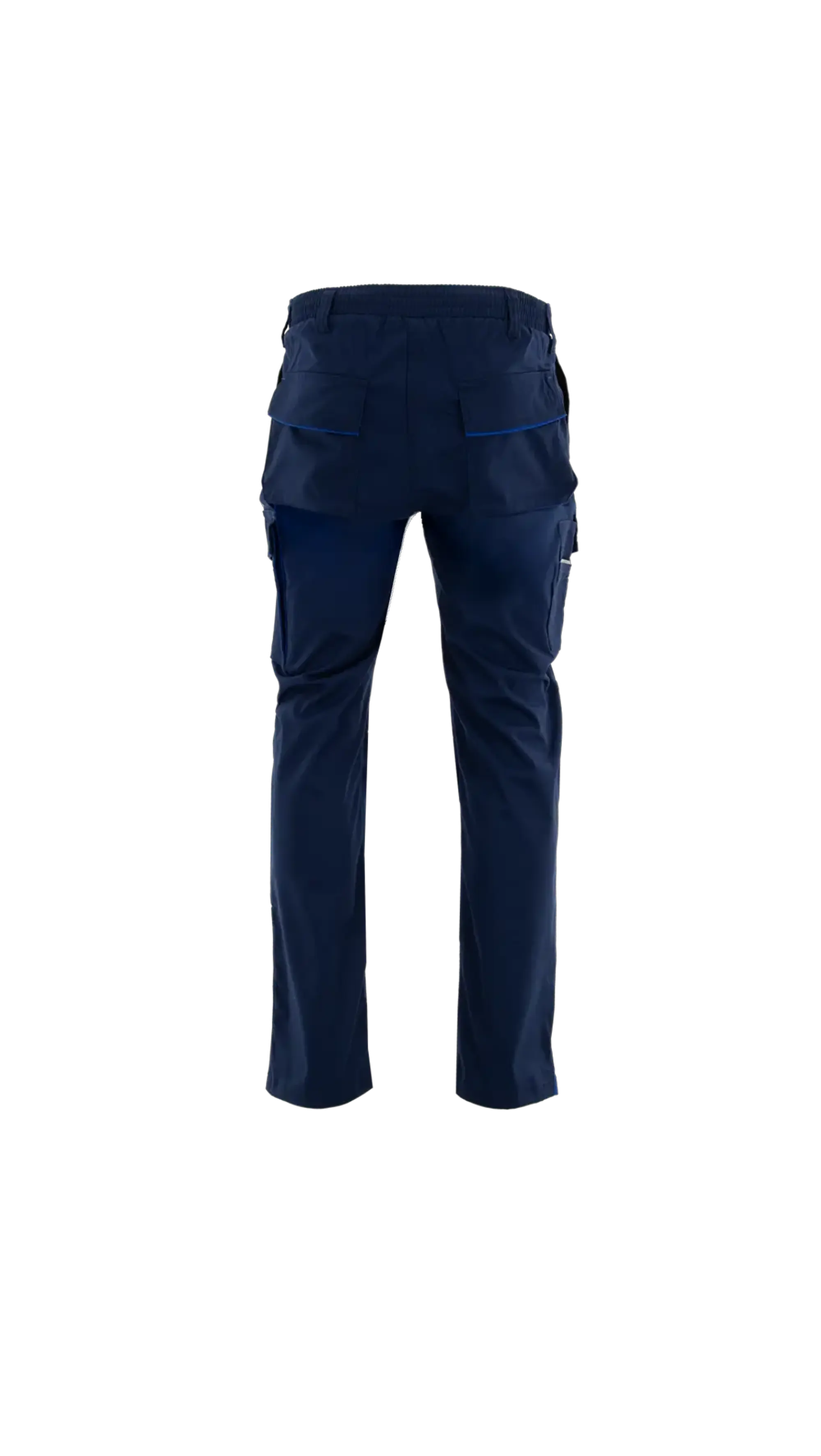 Elastyczna tkanina i regulowany pas gwarantują pełną swobodę ruchu, a praktyczne kieszenie i elementy odblaskowe zapewniają funkcjonalność i bezpieczeństwo w pracy.